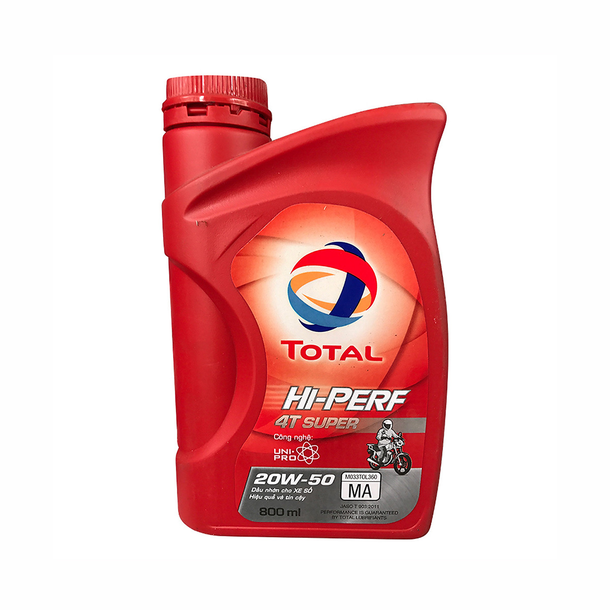 TOTAL Hi-Perf 4T Super là dầu nhờn động cơ xe máy 4 thì cao cấp được đặc chế nhằm duy trì khả năng bảo vệ động cơ. Công nghệ UNI-PRO cho phép duy trì bôi trơn hoàn hảo trong suốt thời gian sử dụng dầu, bảo đảm hiệu suất của động cơ trong mọi điều kiện vận hành